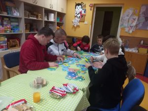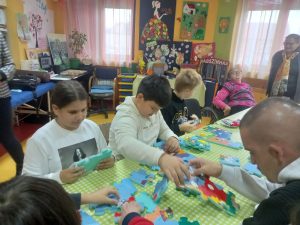 Zatim su zajedno slagali Evropsku uniju od sunđer puzli, što su uspješno savladali. Svi su učestvovali i trudili se da pomognu jedni drugima i uz zajednički rad kroz igru na različitosti među njima niko nije obraćao pažnju. Počastili su se sokom i slatkšima a drugari iz škole donijeli su im različite društvene igre na poklon.